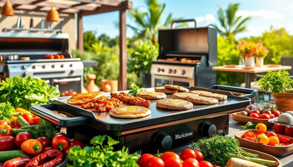 Vegetarian or health-conscious? No worries, Blackstone griddle cooking has you covered. It’s a great way to make delicious, healthy meals. You’ll love the variety of tasty, plant-based dishes you can make.