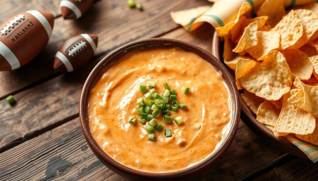 This game day snack is perfect with chips, veggies, or bread. Its smooth, spicy yet tangy taste makes it a hit. It’s a favorite that’s hard to resist.