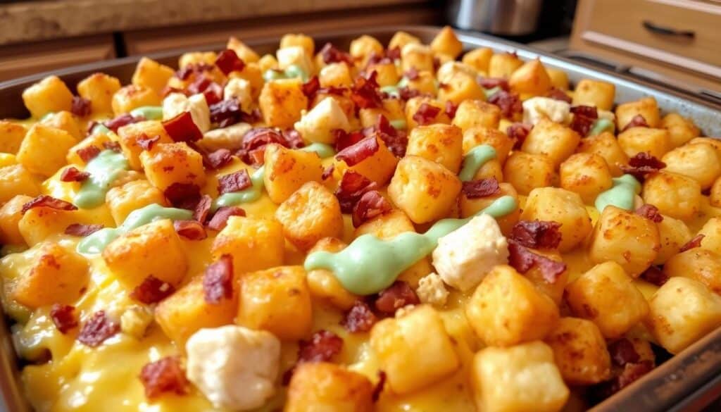 Discover the ultimate chicken bacon ranch tater tot casserole, a hearty blend of crispy taters, savory chicken, and smoky bacon in creamy ranch sauce. Perfect family dinner.
